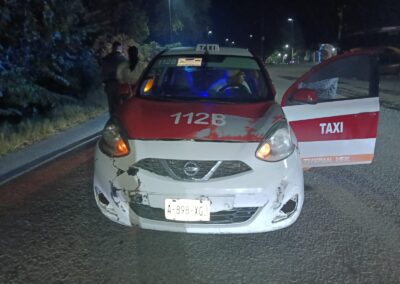 Eran las 00:03 horas cuando el taxi 1128, Nissan March blanco con rojo, modelo 2016, conducido por Moisés Abel «R», de 24 años y vecino de la colonia Colosio, decidió echarse hacia atrás… pero sin verificar si atrás venía alguien.