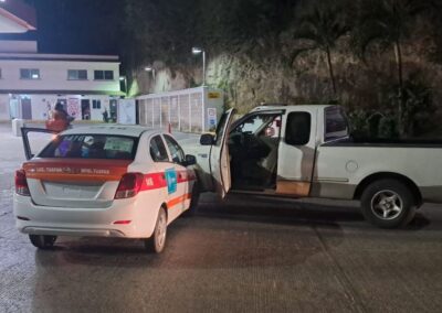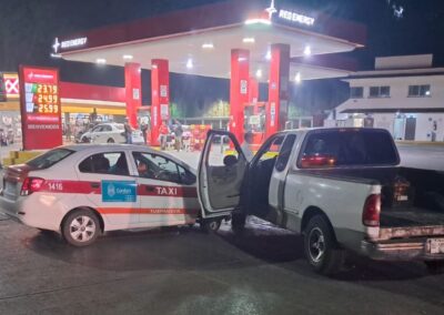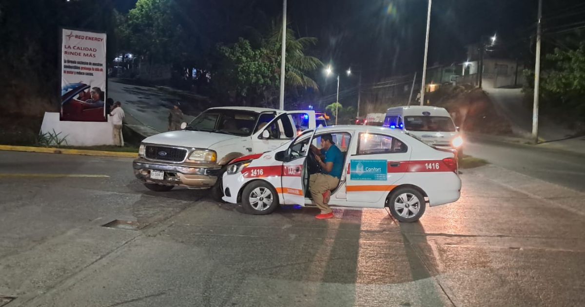 De acuerdo con el parte oficial, el percance ocurrió cuando el conductor de un taxi Chevrolet Beat, colores oficiales blanco con rojo, modelo dos mil veinte, sin placas y marcado con el número económico 1416, intentó dar vuelta a su extrema izquierda sin ceder el paso a los vehículos que circulaban de frente.