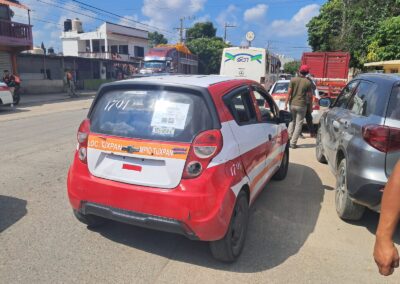 De acuerdo con el parte de las autoridades, el percance ocurrió alrededor de las 11:15 horas, cuando el conductor de un vehículo Chevrolet Spark con colores oficiales blanco con rojo, sin placas y con número económico 1791, colisionó por alcance a otro taxi de la marca Dodge Attitude, también con cromática blanca y roja, número económico 1227.