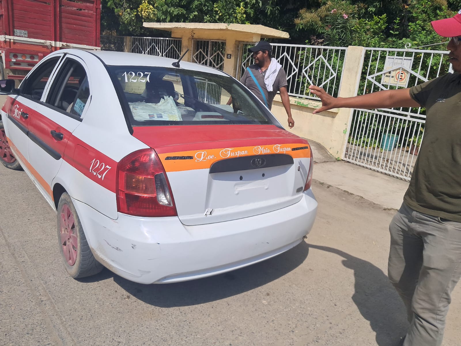 De acuerdo con el parte de las autoridades, el percance ocurrió alrededor de las 11:15 horas, cuando el conductor de un vehículo Chevrolet Spark con colores oficiales blanco con rojo, sin placas y con número económico 1791, colisionó por alcance a otro taxi de la marca Dodge Attitude, también con cromática blanca y roja, número económico 1227.