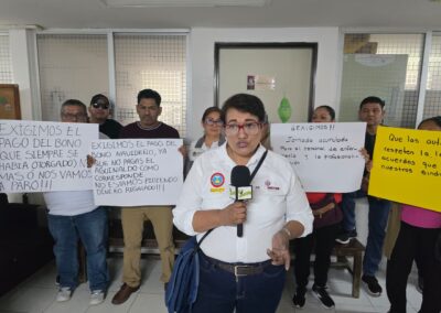 La representante del Sindicato del Poder Ejecutivo del Estado de Veracruz, Araceli Zaleta Vásquez, explicó que el conflicto no se limita únicamente a los vales, sino que refleja una problemática más amplia que arrastra el sector salud: carencia de medicamentos, falta de médicos especialistas, escasez de personal de enfermería, camilleros y personal operativo, así como irregularidades en el pago de días festivos y en los procesos de profesionalización del personal de enfermería .