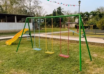 Durante la intervención se llevó a cabo limpieza general, chapeo, arreglo de jardines, aplicación de pintura en bancas, kiosco y juegos infantiles, así como mantenimiento a las luminarias, con el objetivo de devolverle a este espacio su funcionalidad y buena imagen para el disfrute de las familias.