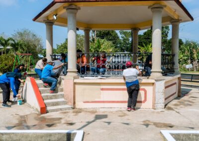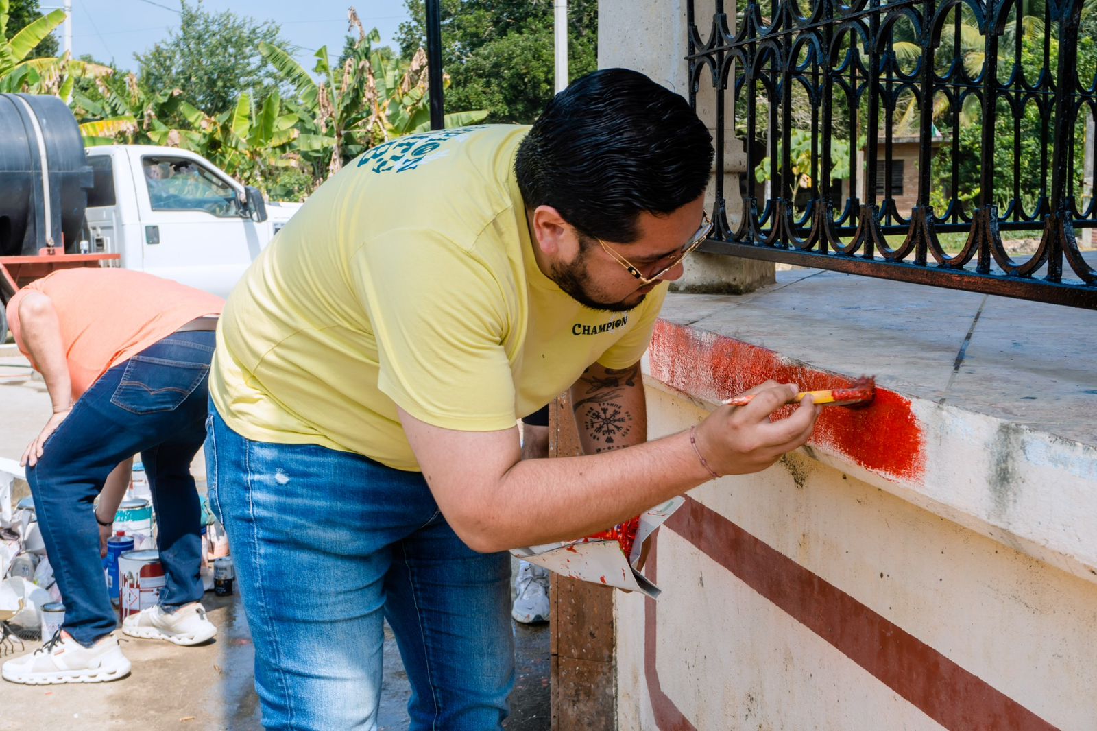 Tuxpan, Veracruz a 21 de febrero de 2026.- Este sábado, el alcalde Daniel Cortina Martínez, acompañado por personal del Ayuntamiento, acudió a la comunidad de Chomotla para realizar una jornada de trabajo enfocada en la rehabilitación del parque de la localidad.