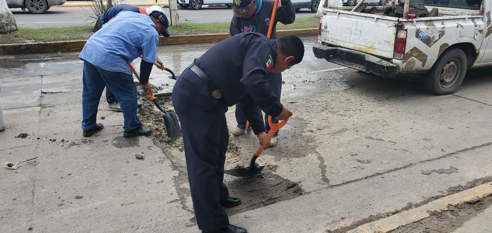 El bache que dejó CAEV en pleno Bulevar Reyes Heroles —entre las calles de Carranza y Heroica Veracruz— tuvo que ser tapado este miércoles… ¡pero no por ellos!, sino por personal de Tránsito Municipal y trabajadores del Ayuntamiento, quienes terminaron resolviendo el desastre dejado por la paraestatal del agua.