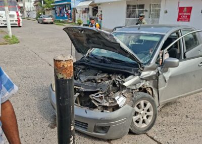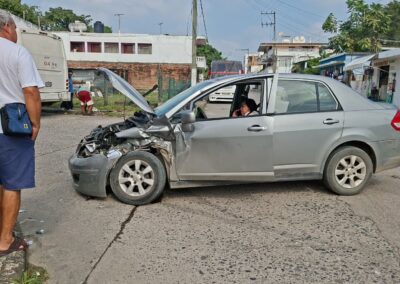 Los hechos ocurrieron en la calle Hernández y Hernández, esquina con Juan Soto Lara, donde el conductor José Alonso «N», de 26 años, manejaba una unidad Oceloth táctico blindado, modelo 2025, color verde. Al no respetar la preferencia de paso, terminó impactándose contra un Nissan Tiida gris, modelo 2014, con placas YPB-610-A, conducido por la ciudadana Juana «N», de 51 años, vecina de la zona Centro.